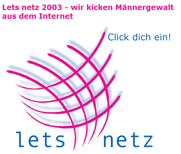 2003: 'Lets netz - wir kicken Männergewalt aus dem Internet'Initiative v. GST München und dem Verein Kompetenz für Frauen![]()